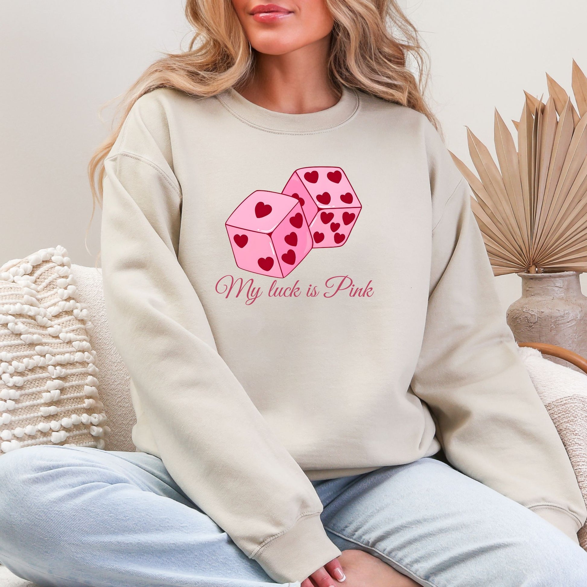 A playful and feminine sweatshirt featuring pink dice with heart details and the phrase “My Luck Is Pink.” Designed for women who believe in good vibes, confidence, and a little bit of magic, this cozy piece blends charm, positivity, and effortless style. Fun, cute, and feel-good.
